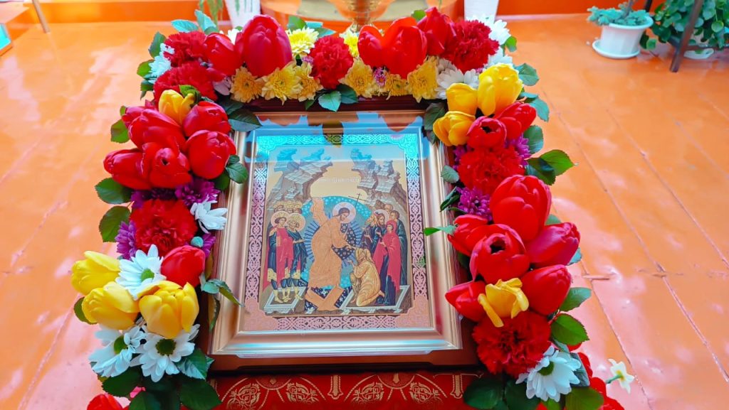 В воскресенье 5-го мая, в светлый праздник Воскресения Христова, была совершена пасхальная Утреня, предваряемая Полунощницей и праздничная Литургия в храме вмч. Димитрия Солунского с. Теплоключенка.