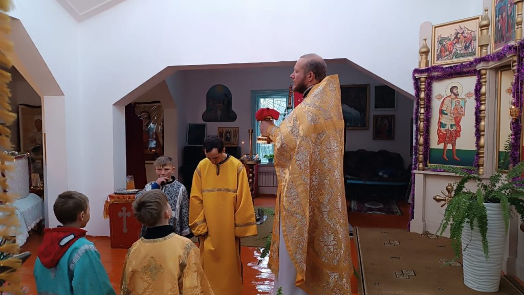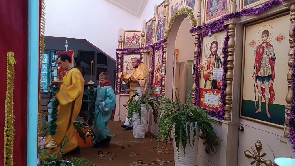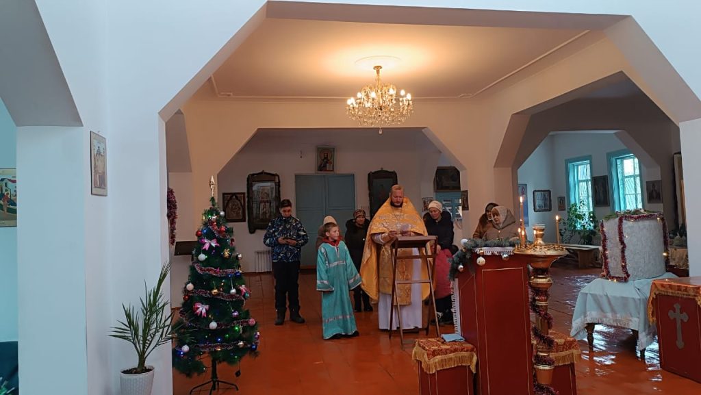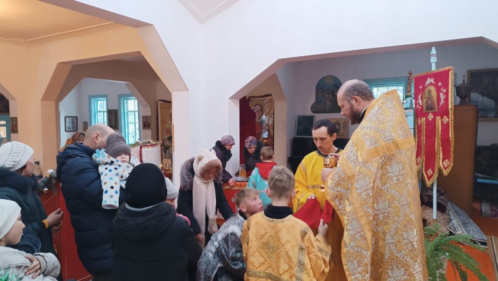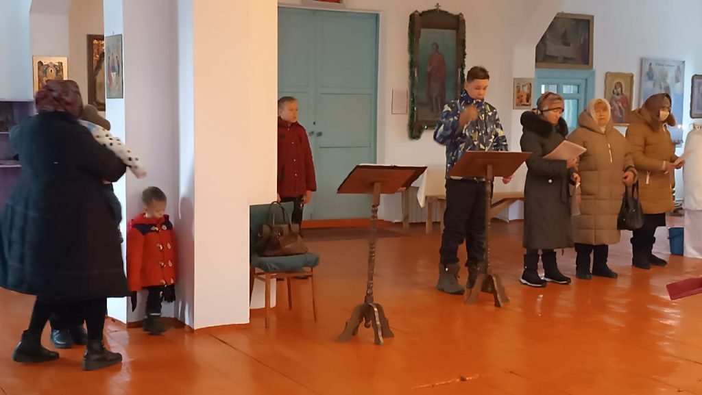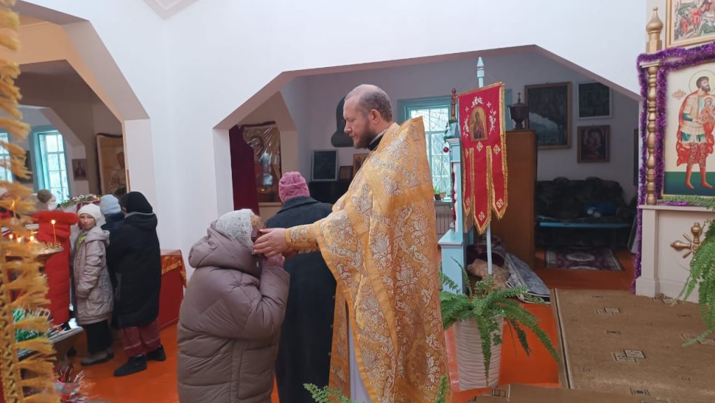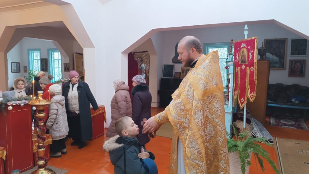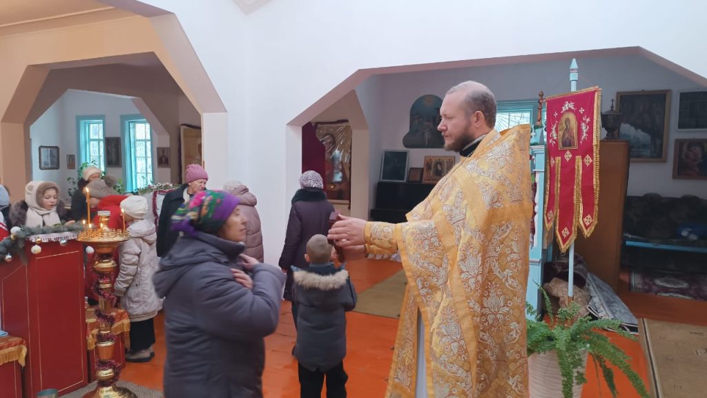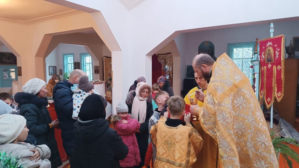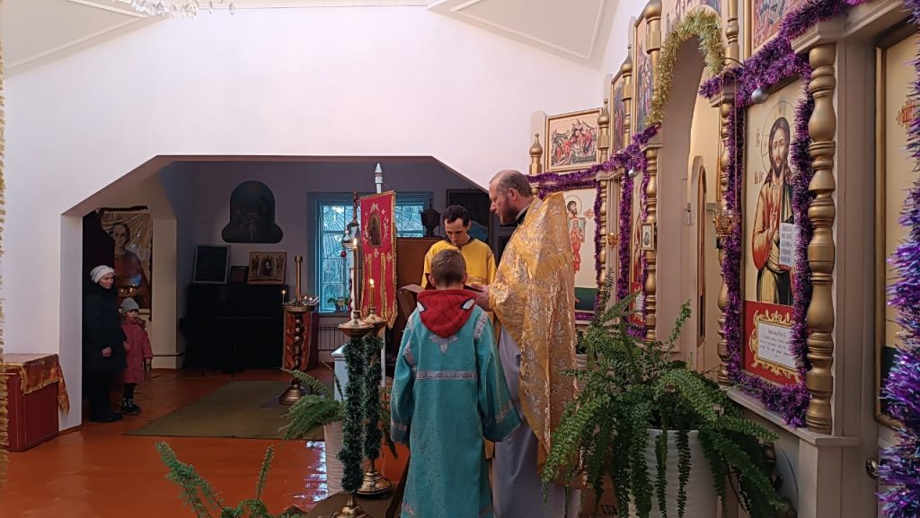В воскресенье 5-го января, в неделю святых отцов, была совершена Божественная Литургия в храме вмч. Димитрия Солунского с. Теплоключенка. После службы был совершён молебен.