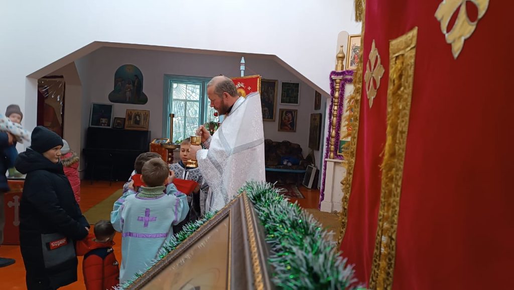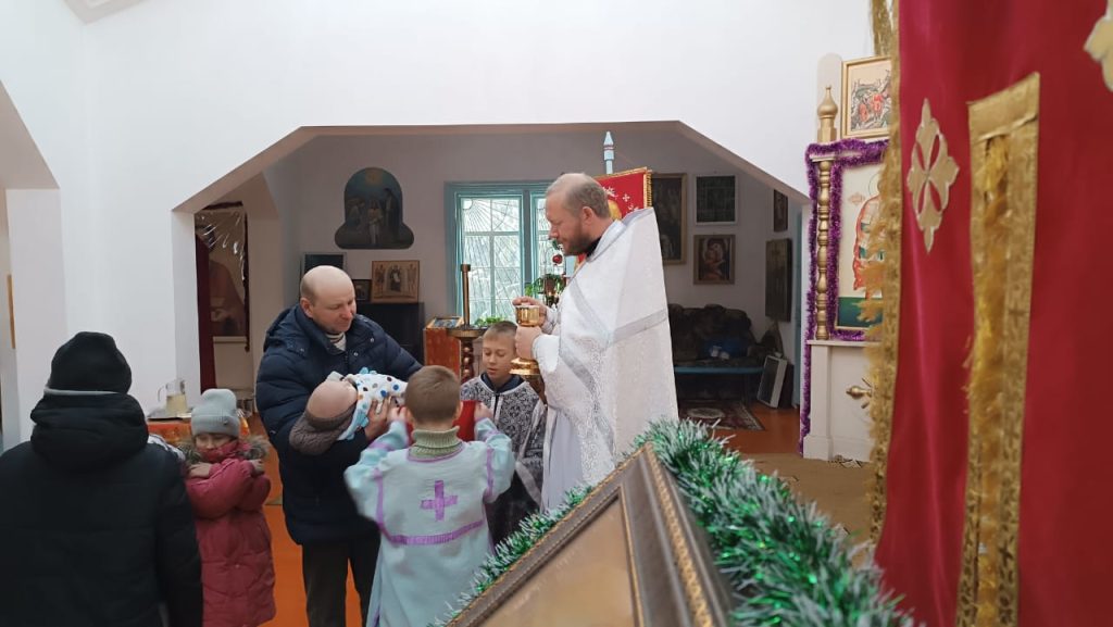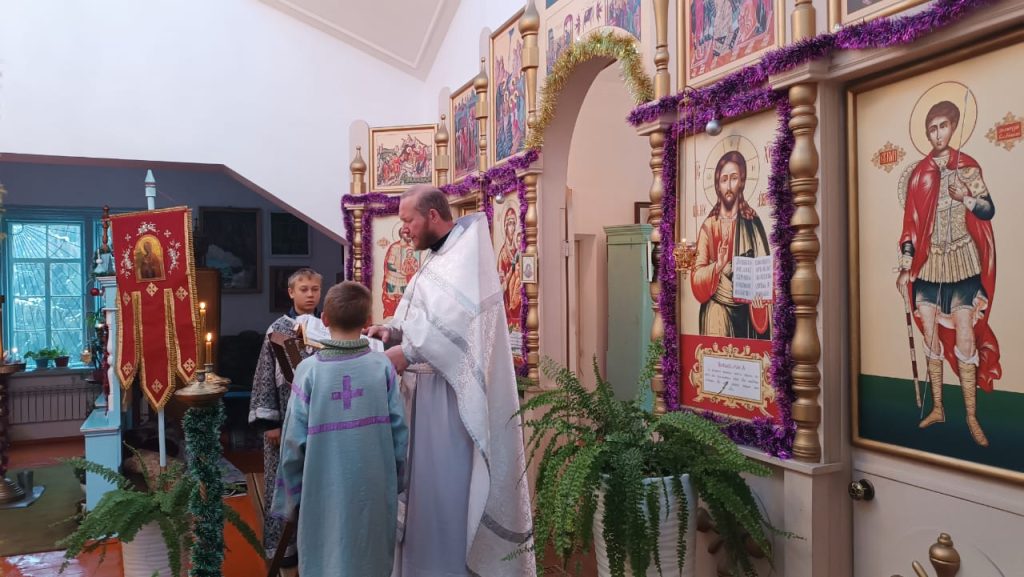 В субботу 11-го января, в день памяти святых мучеников 14-ти тысяч младенцев за Христа в Вифлиеме убиенных, и преподобного Маркелла, была совершена Божественная Литургия в храме вмч. Димитрия Солунского с. Теплоключенка.