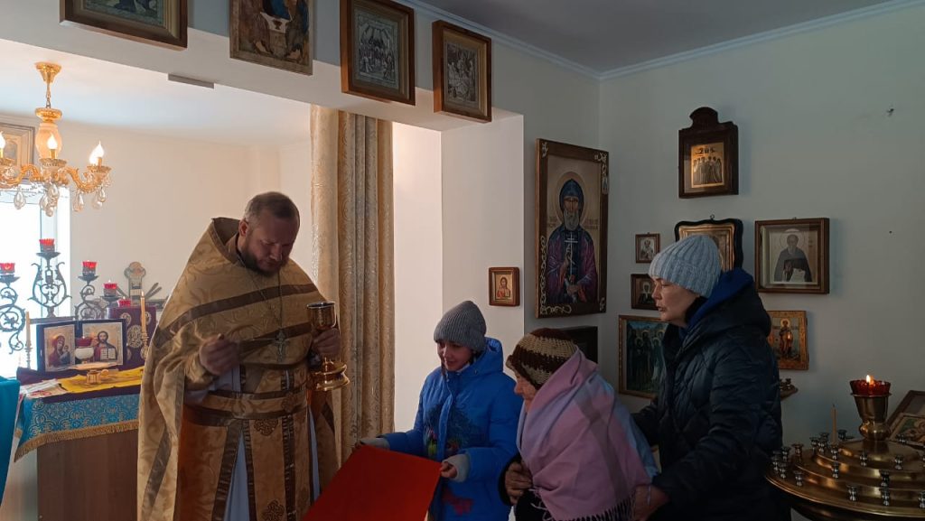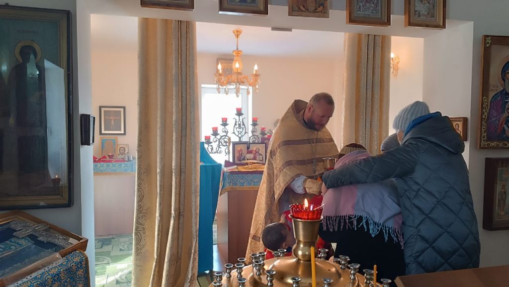 В четверг 13-го февраля, в день памяти святых мучеников Кира и Иоанна, была совершена Божественная Литургия в храме Смоленской иконы Божией Матери в селе Ак-Булун.