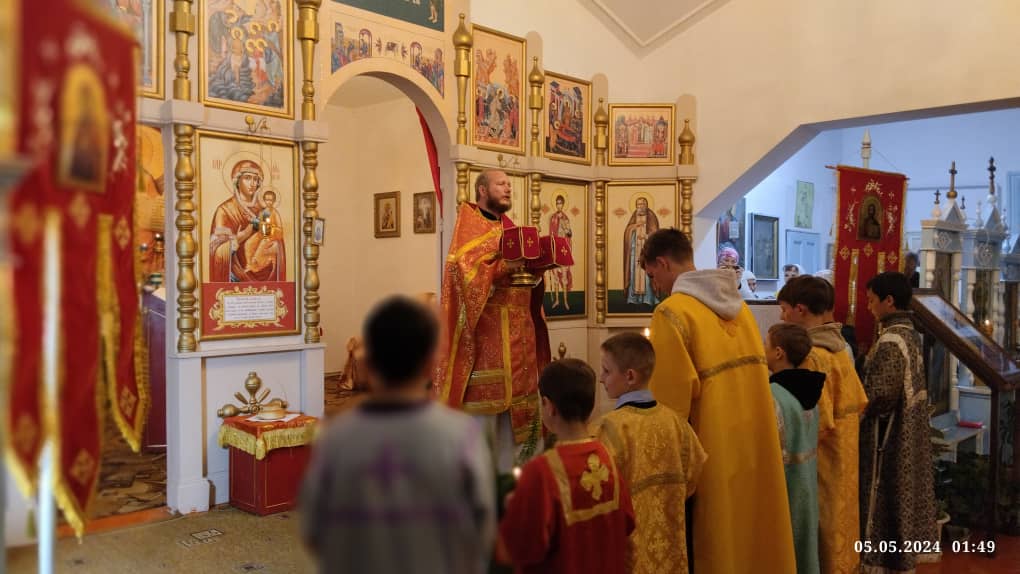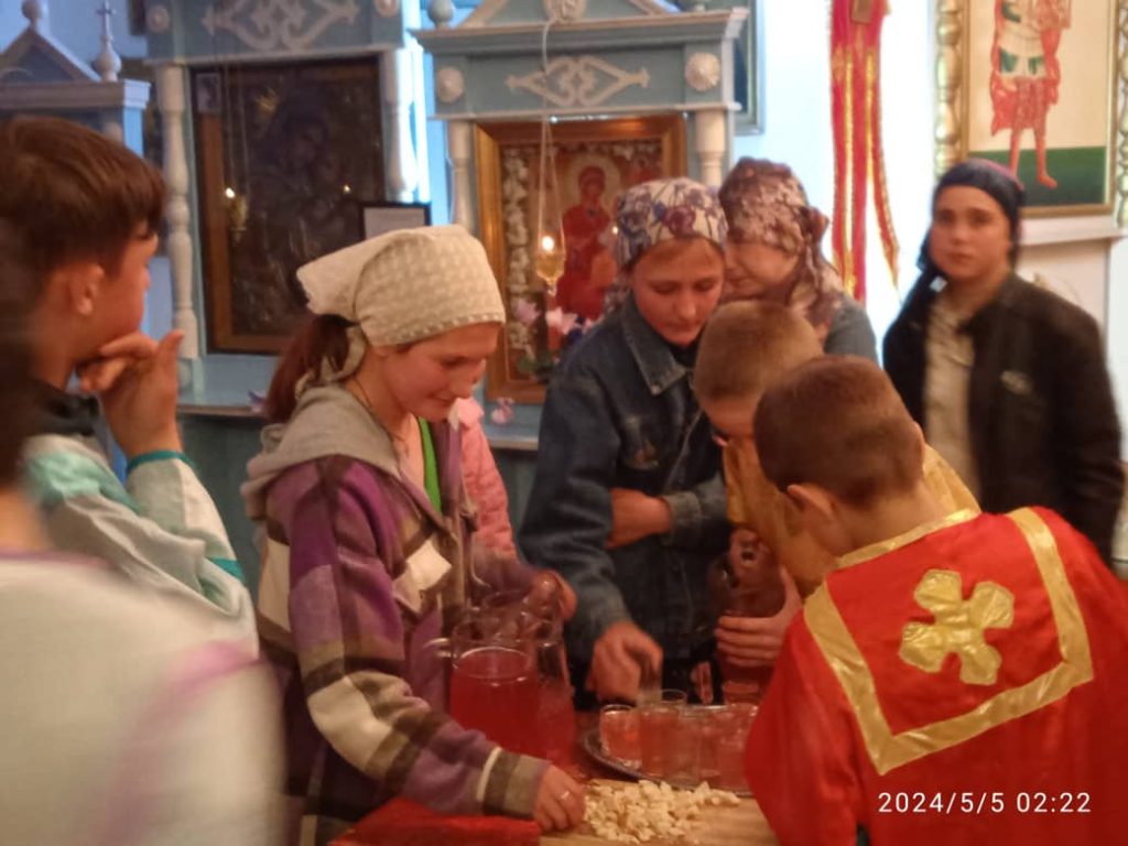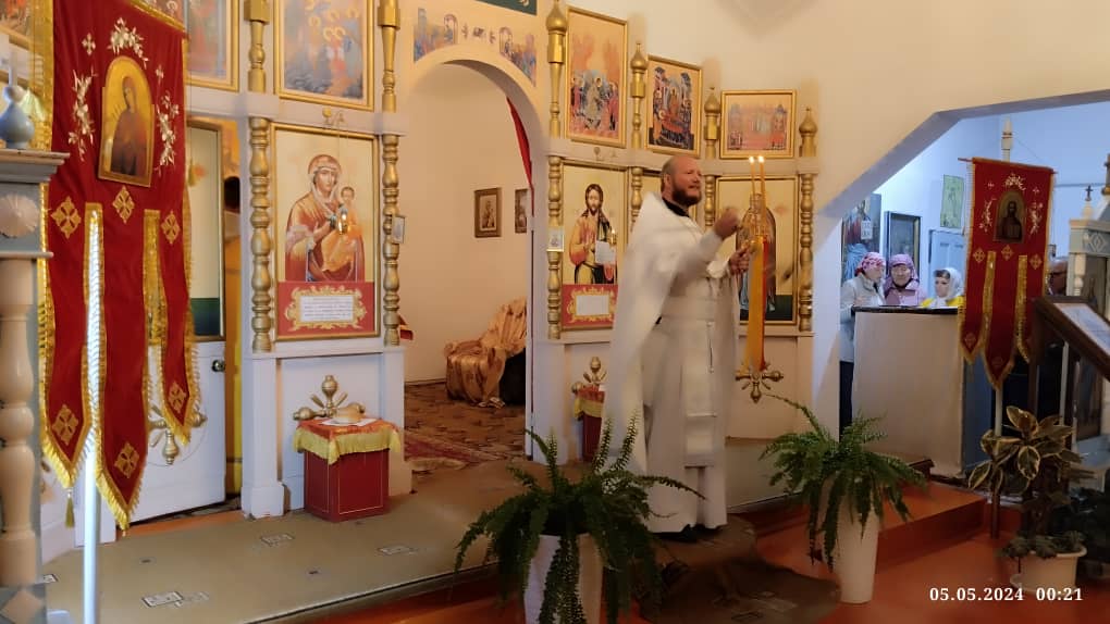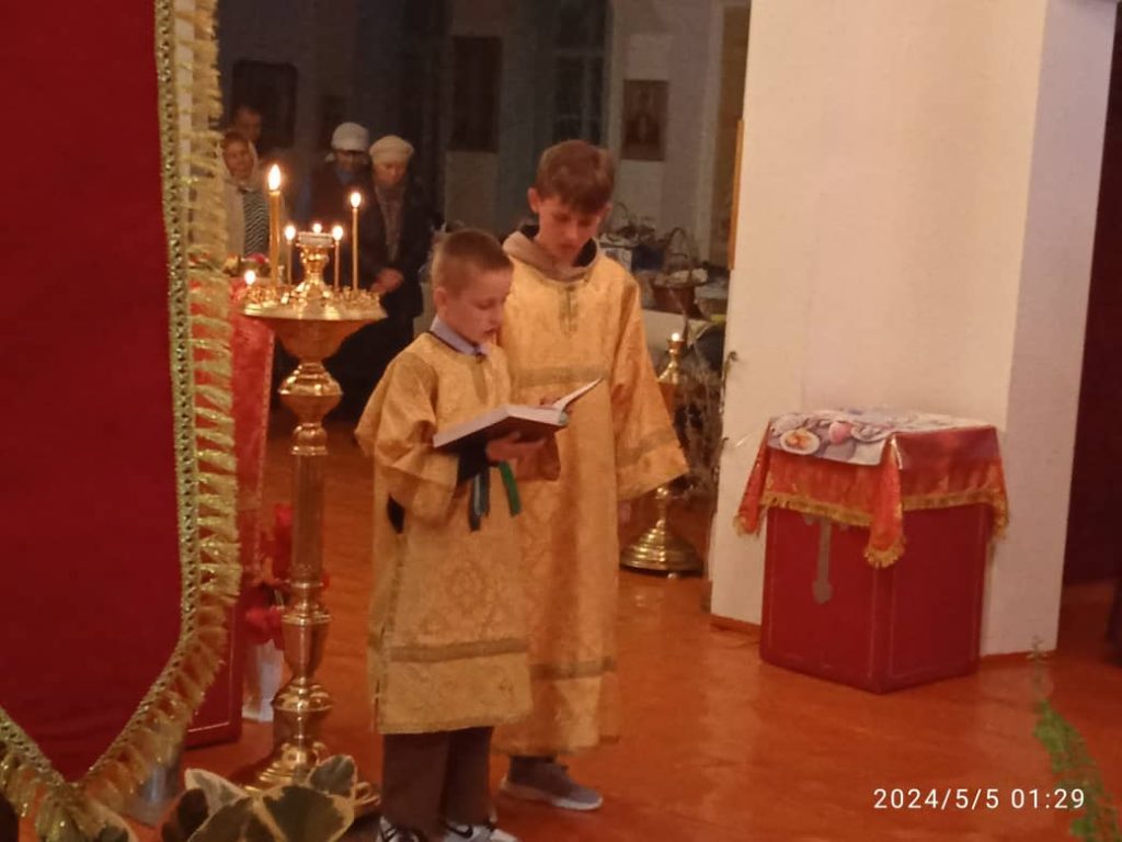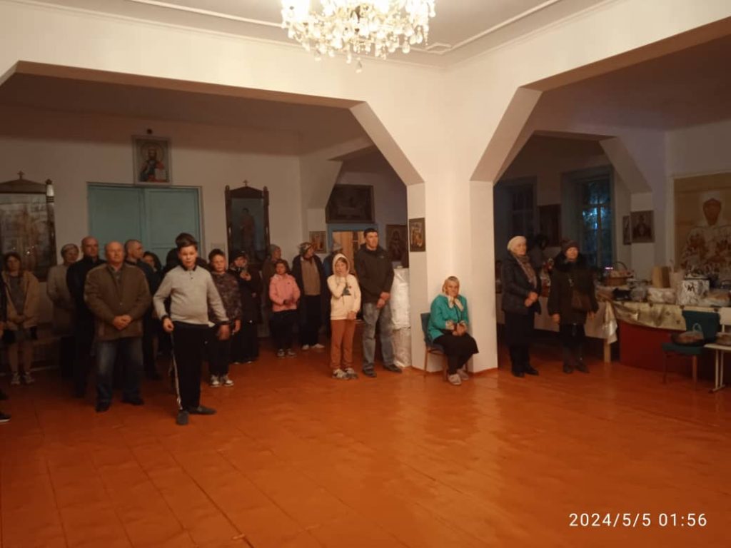В воскресенье 5-го мая, в светлый праздник Воскресения Христова, была совершена пасхальная Утреня, предваряемая Полунощницей и праздничная Литургия в храме вмч. Димитрия Солунского с. Теплоключенка.