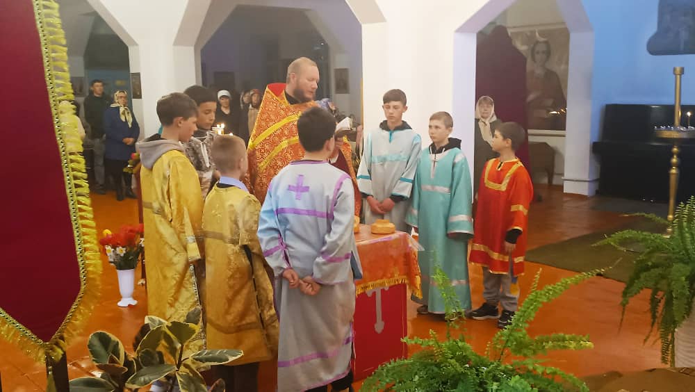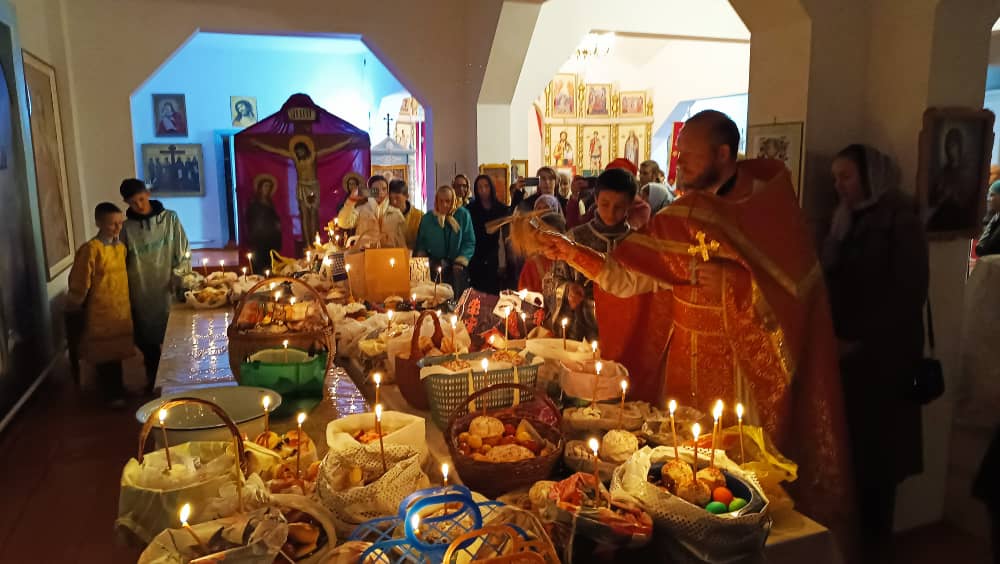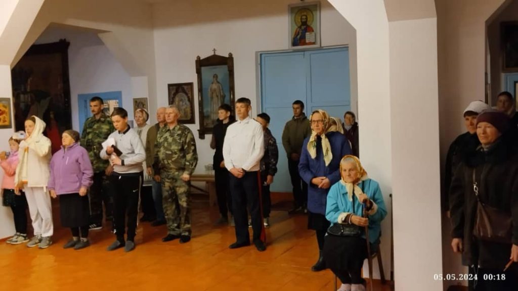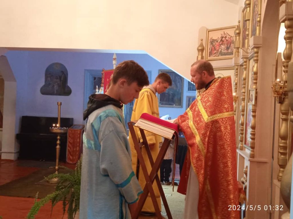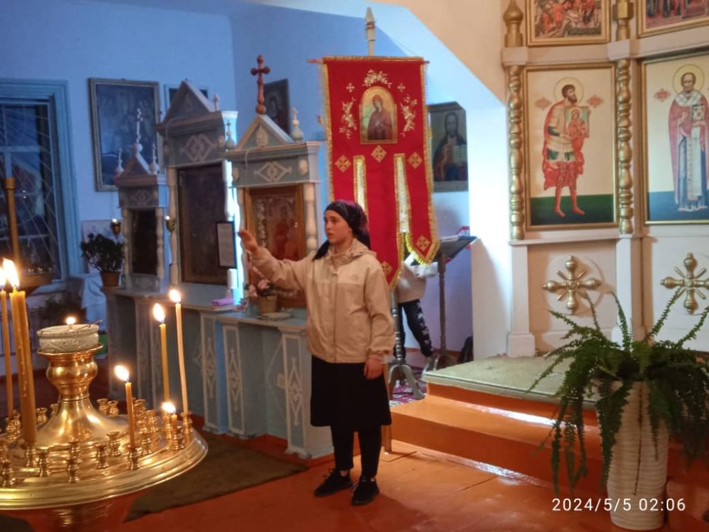 В воскресенье 5-го мая, в светлый праздник Воскресения Христова, была совершена пасхальная Утреня, предваряемая Полунощницей и праздничная Литургия в храме вмч. Димитрия Солунского с. Теплоключенка.
