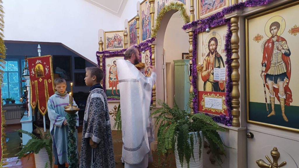 В субботу 11-го января, в день памяти святых мучеников 14-ти тысяч младенцев за Христа в Вифлиеме убиенных, и преподобного Маркелла, была совершена Божественная Литургия в храме вмч. Димитрия Солунского с. Теплоключенка.